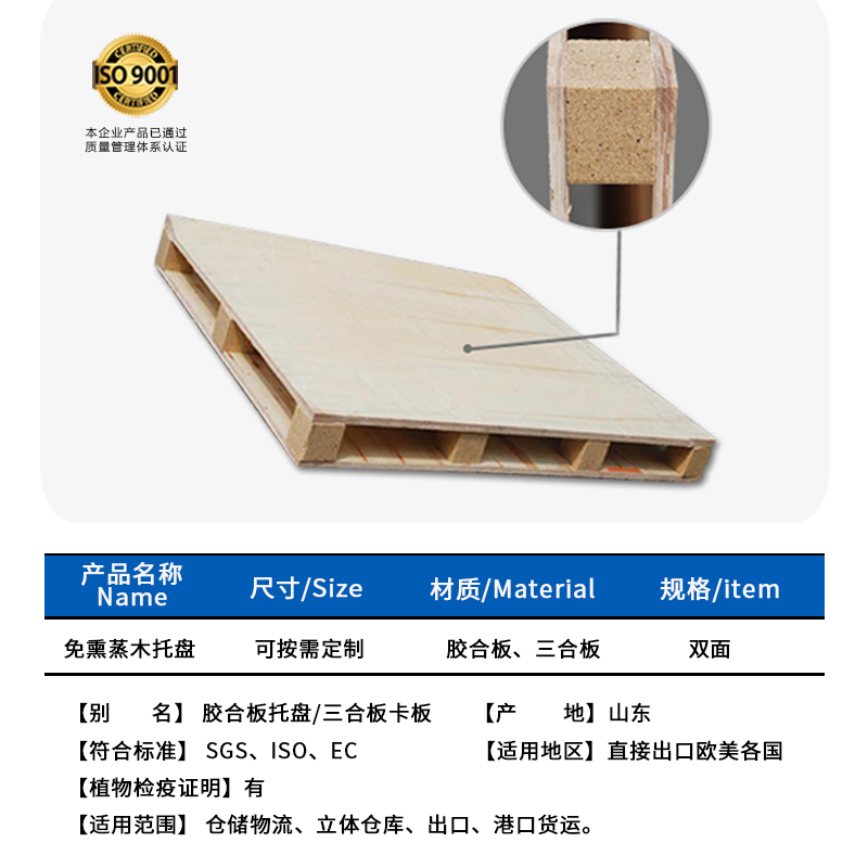 3、可有效避免傳統(tǒng)木托盤(pán)的木結(jié)、蟲(chóng)蛀、色差、濕度高等缺點(diǎn);
