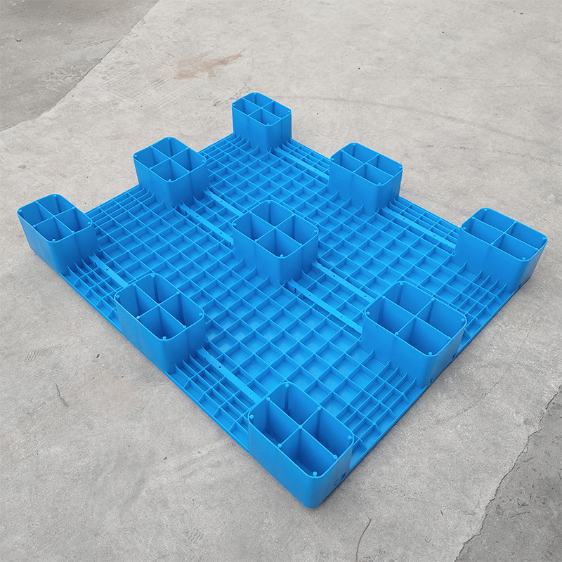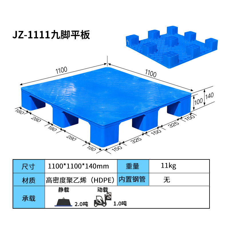 九腳平板塑料托盤底部為“九腳形”設計的塑料搬運制品,其表面為平面,廣泛應用于紡織廠、食品廠、醫藥廠等企業。這種托盤的設計特點包括輕質、平穩、美觀,無釘無刺,無毒無味,耐酸堿,不腐爛,不易被細菌繁殖,易清洗消毒,不助燃,無靜電,無火花,防暴,防滑溜,回收價值高。與鋼托盤、木托盤相比,九腳平板塑料托盤具有更好的環保性和安全性,能夠提升企業形象,提高物流效率。此外,九腳平板塑料托盤因其表面為平板狀,不易積累灰塵,方便清洗;受力均勻,對貨物有很好的保護作用;平面上均留有排氣小孔,具有良好的透氣性和防潮效果。這種托盤主要應用于倉庫輕型貨物墊倉板、叉車周轉較輕貨物使用,不適合于上貨架或者轉載大重量的貨物?