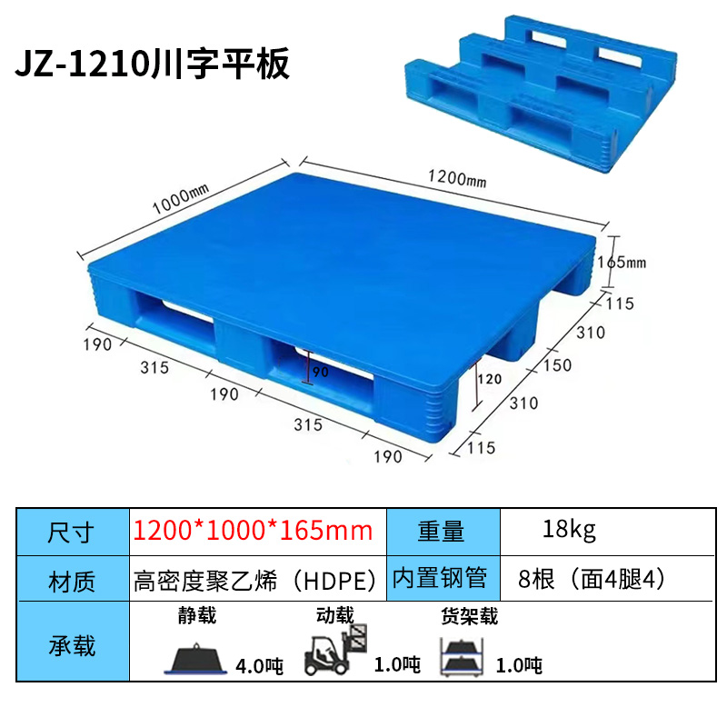 平板川字塑料托盤的結(jié)構(gòu)設計合理,使其具有較強的承載能力。根據(jù)不同的使用需求,塑料托盤可以定制不同的尺寸和載重能力,滿足不同場景下的物流需求。