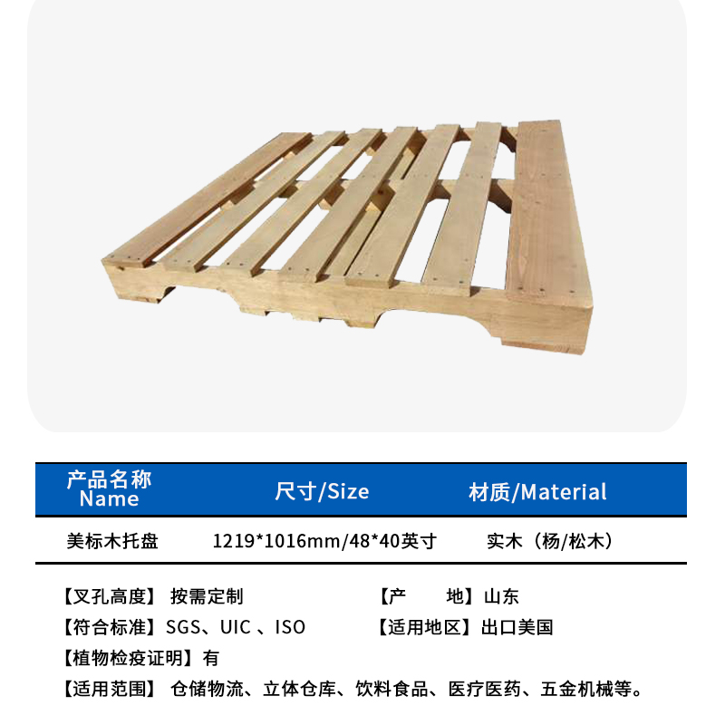 歐標木托盤是應用于歐洲等國的木托盤(這里的歐洲包括東歐、西歐、北歐以及中歐等),歐標木托盤尺寸是1200*800MM,它的木托盤結構只有一種,只能是四面進叉,相較于美式木托盤來說,做工較復雜。特點:1.歐洲標準托盤(Pallet EUR1,尺寸標準:1200mm×800mm×144mm)為常用型號,主要使用國為歐洲大陸、德、法等