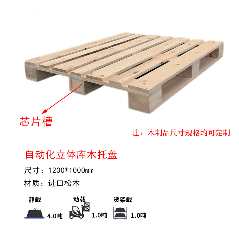 優選材料:選用進口松木制作,密度560-600kg/立方米,干燥性好,不易變形和開裂,耐腐蝕牢固耐用:采用三種不同強度的螺絲釘加固,隱形美觀,牢固性好芯片卡槽:托盤設有RFID芯片槽位置,可插電子芯片,高效管理貨物,是智能倉儲、物流電商、立體貨架等行業的得力助手四邊圓角:四角倒圓角設計,預防碰撞時給貨物帶來損害,