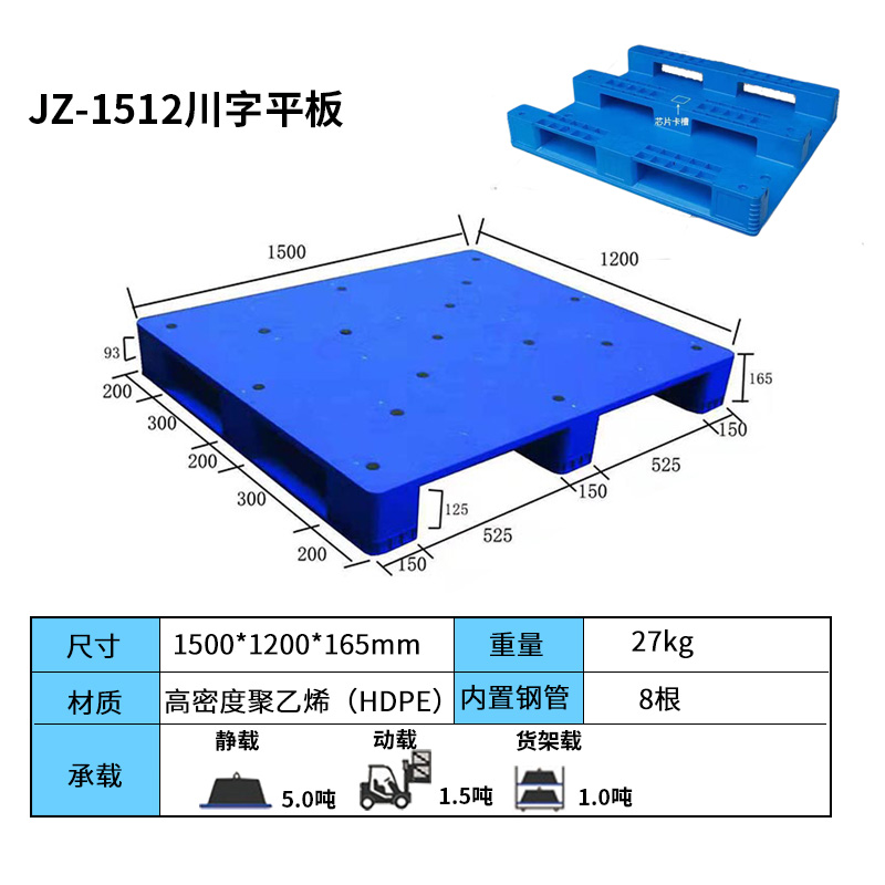 尺寸:1500*1200mm川字平板塑料托盤