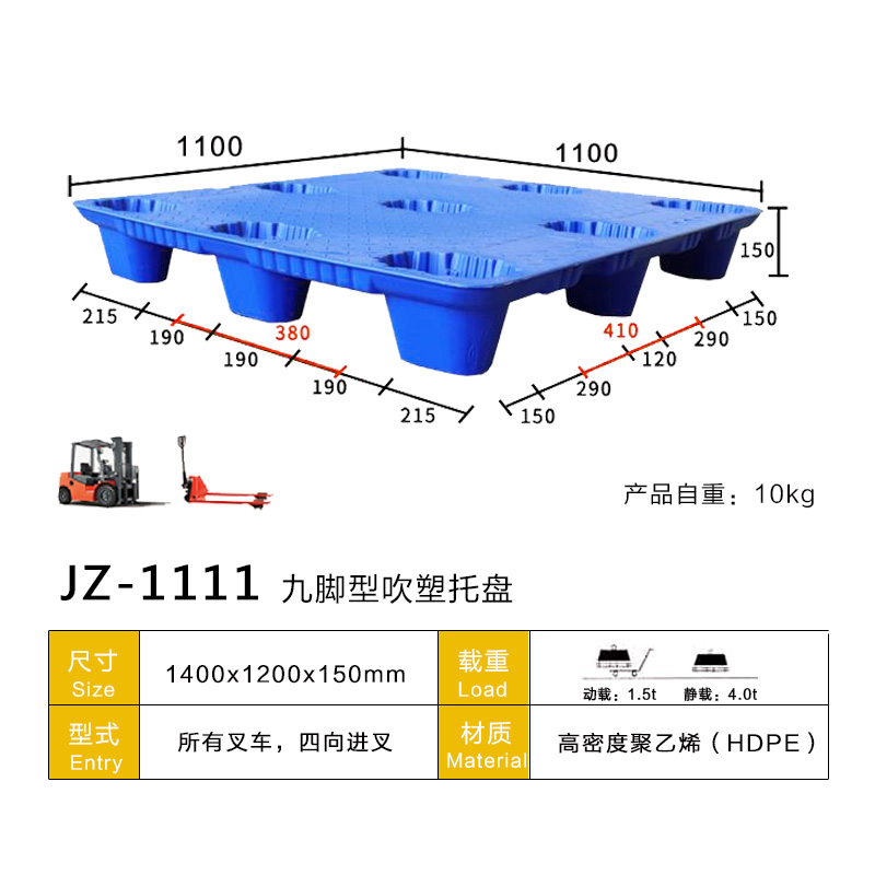 九腳均勻分散在托盤的受力點(diǎn)處,使托盤受力均勻,不易變形。